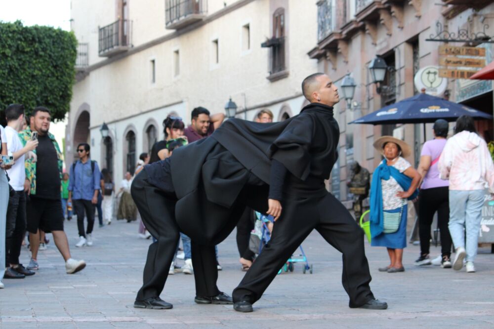 La danza es uno de los elementos más importantes dentro del festival, el viernes iniciamos con las presentaciones en el Andador Madero de Alex Flores con “Fisura”, quien desde Tijuana nos mostró una obra que habla sobre la dualidad y cómo el ser humano transita por claroscuros, ecos y reverberaciones, asimismo tuvimos la presentación de EXPERIMENTOS A.D. con ¿Y entonces?, una obra que nos lleva a través de los personajes preguntas y divagaciones acerca de la felicidad. Estas dos piezas dancísticas se presentaron nuevamente el sábado en el Andador 5 de mayo.