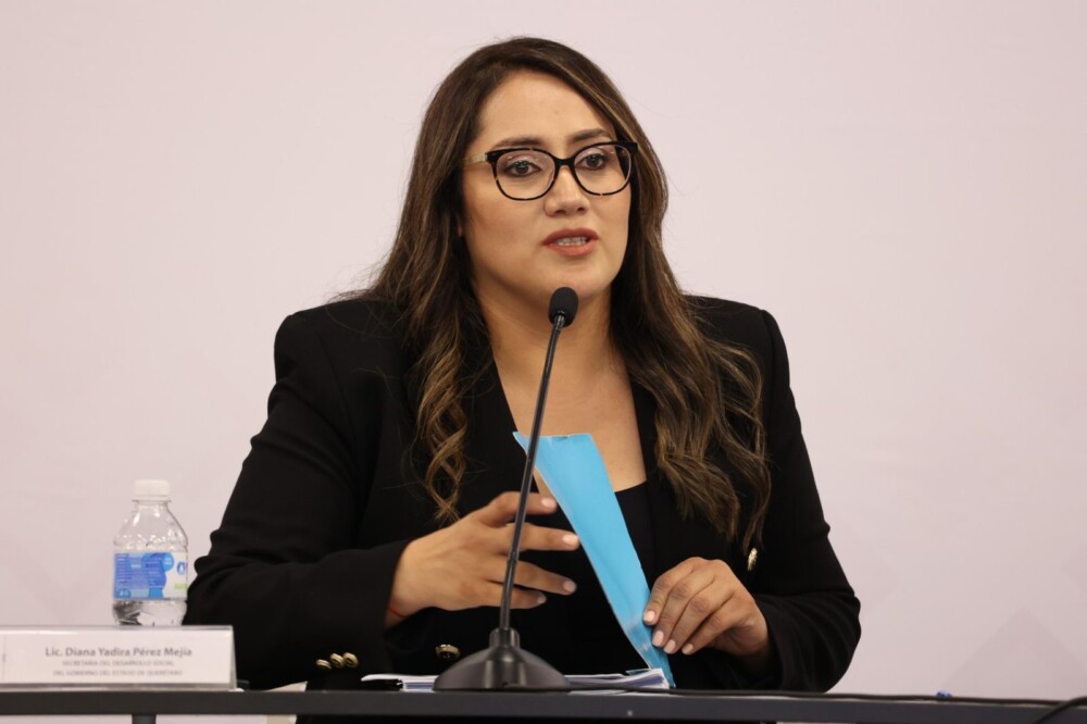 Compareció ante diputadas y diputados de la LX Legislatura del Estado, para realizar la Glosa del Tercer Informe de la administración pública estatal en lo referente a las acciones realizadas por la Secretaría de Desarrollo Social del Estado de Querétaro (SEDESOQ), su titular, Diana Yadira Pérez Mejía, en mesa de trabajo moderada por la presidenta de la Comisión legislativa de Desarrollo Social, Grupos Vulnerables y Vivienda, Verónica Galicia Castañón.